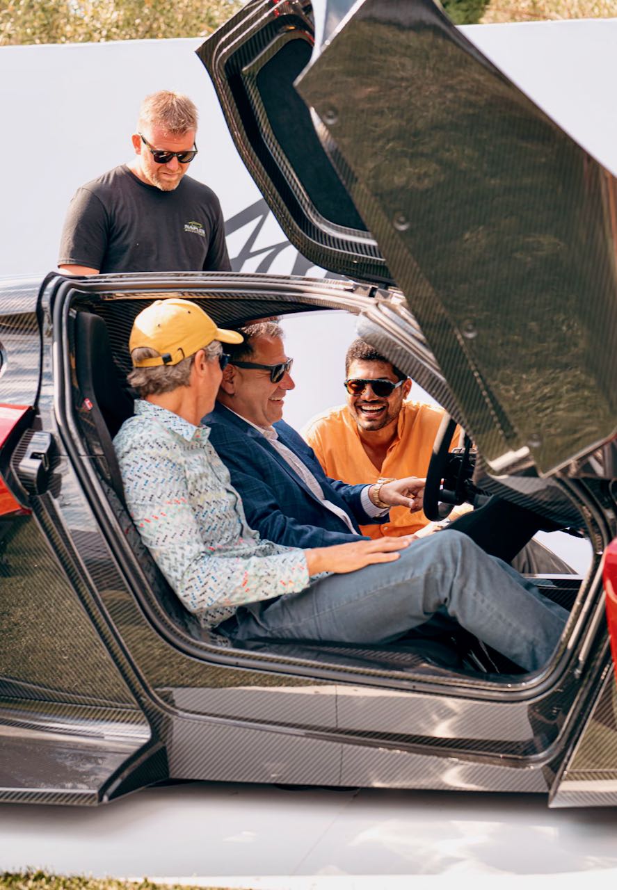Shannine Yngvason is a talented artist who for years wowed audiences with her avant-garde music. Since 2018 she has been wowing the high-value collector car market with her custom House of Wolves leather car interiors and luxury leather goods. I met her early Sunday morning near Casa Ferrari at the Concours. She is posing next to one of her favorite cars – the iconic 1949 Ferrari 166 MM Barchetta, the sports roadster that helped build Ferrari’s international reputation as THE builder of Victory Lane racecars.